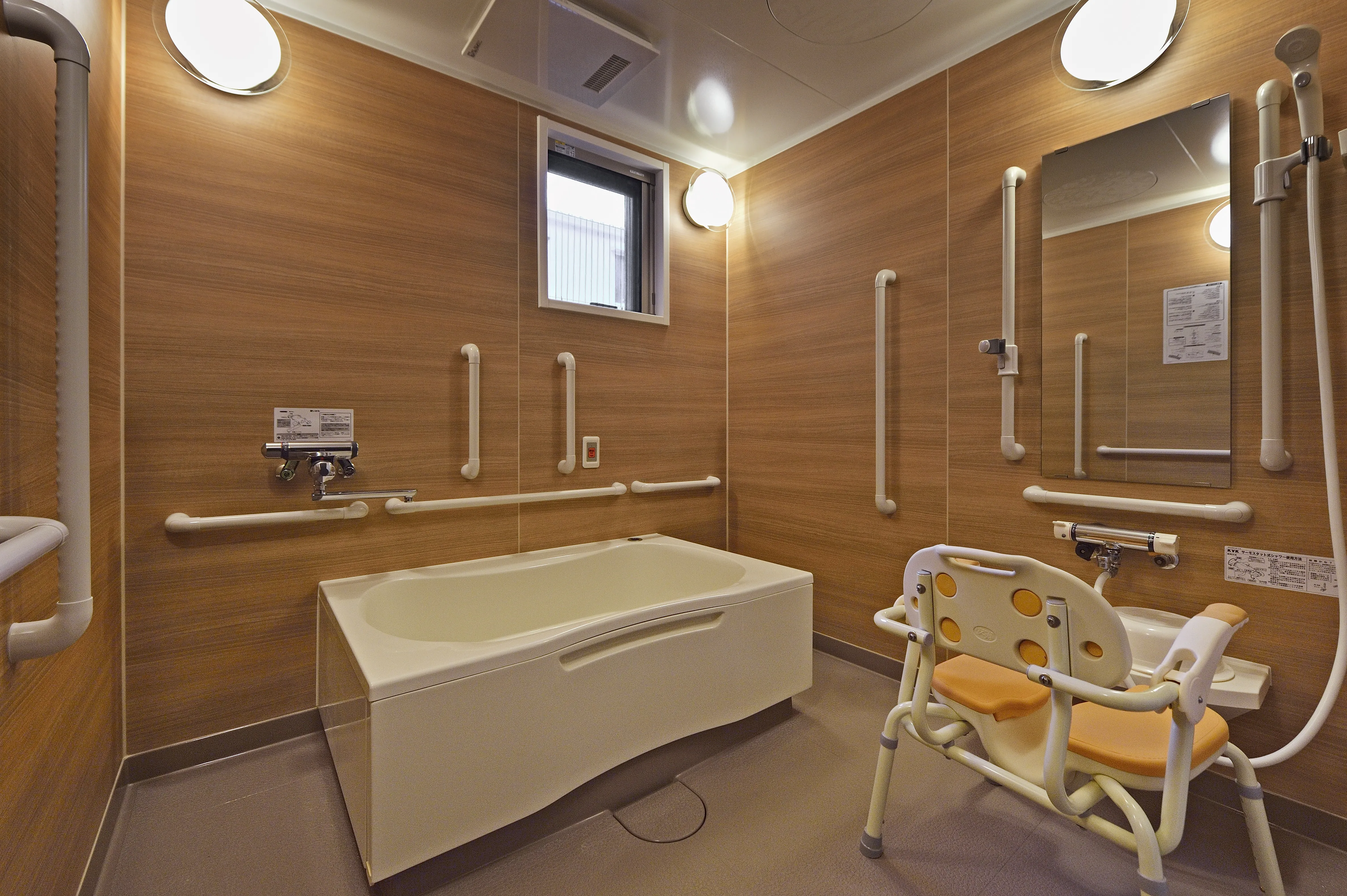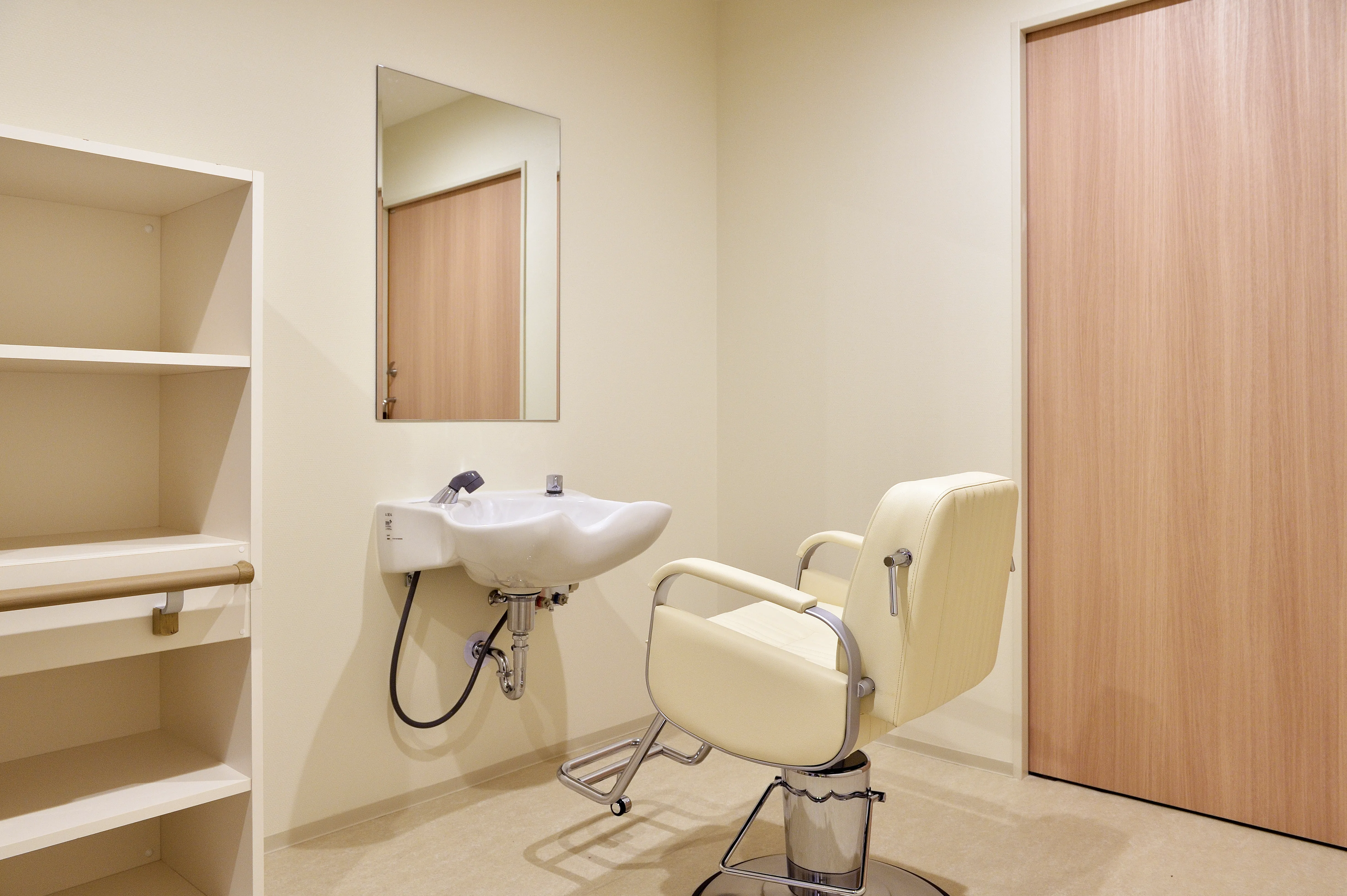 ラウンジ、パティオ、ダイニングルーム、一般浴室、機械浴室、個浴室、健康管理室、リハビリルーム、応接会議室、洗濯室、共用トイレ、ヘルパーステーション、事務室、サブヘルパーステーション、理美容コーナー