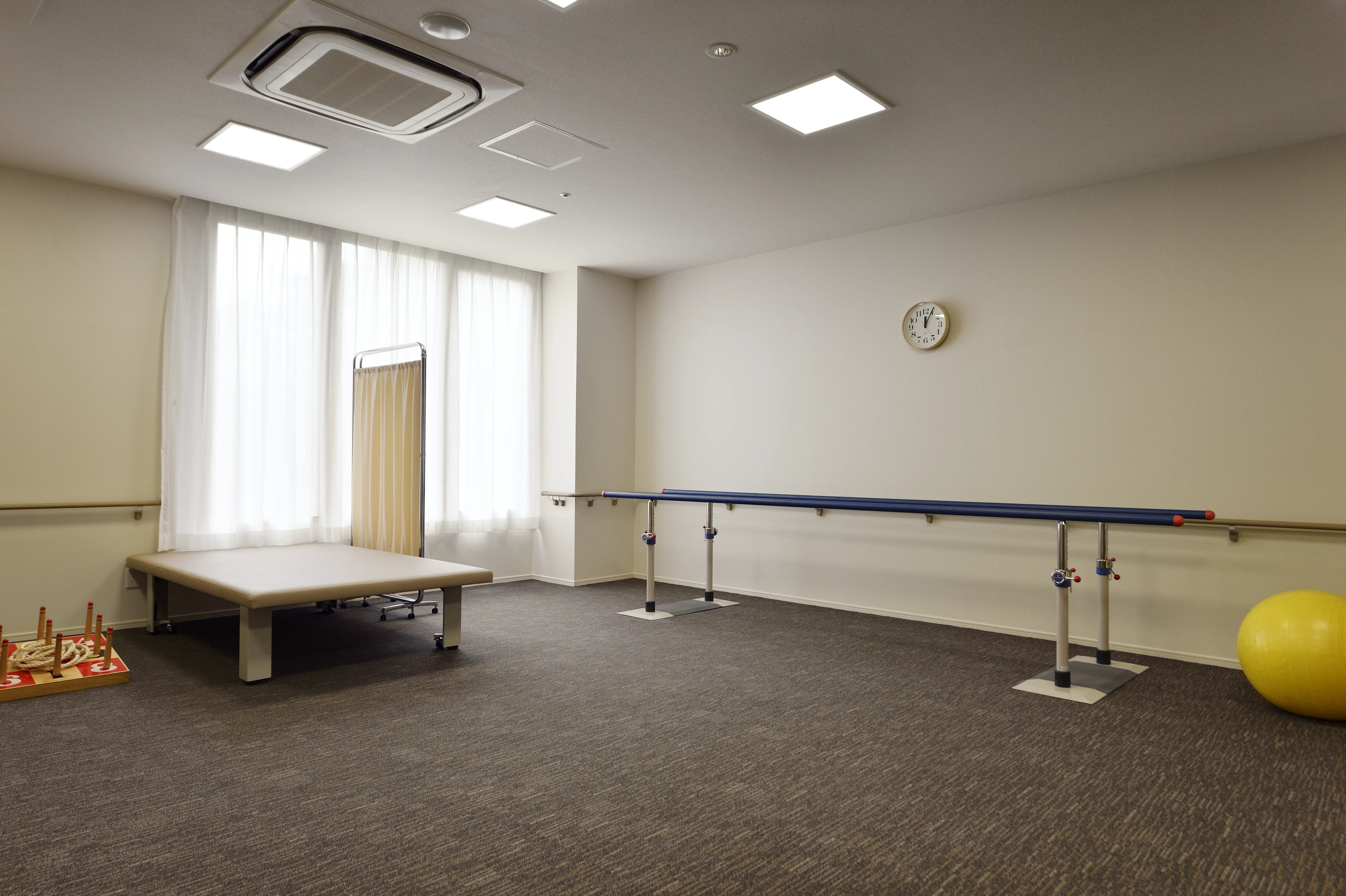 リハビリの専門知識を有する国家資格の機能訓練指導員が対応し、ご入居者様であればどなたでもご参加いただける身体機能の維持・向上を目的としたグループリハビリのほか、お身体の状況に応じてリハビリ計画を立て、マンツーマンで行う個別リハビリもご利用いただけます。