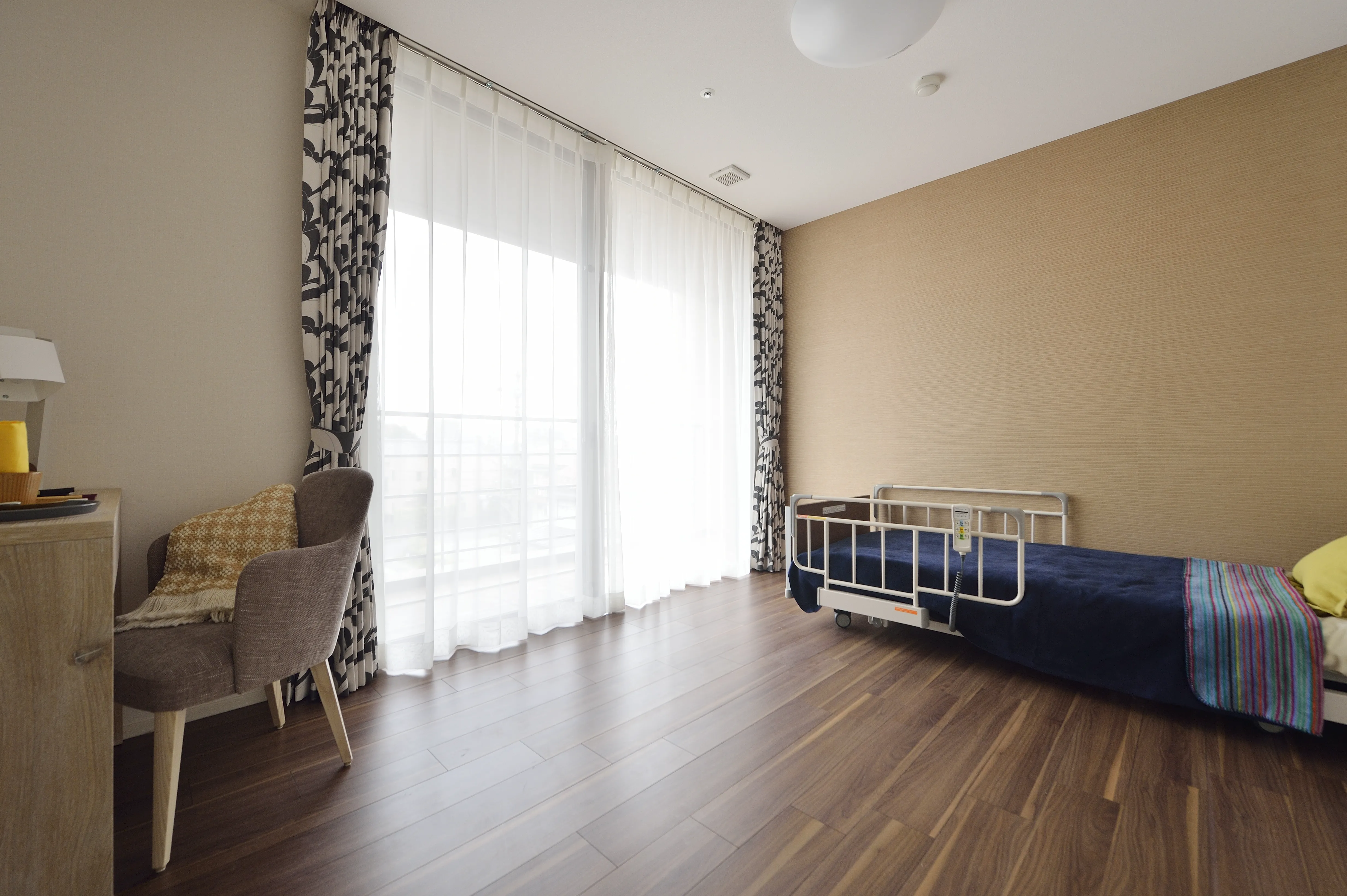 快適性と機能性を重視した居室には、光と風を取りこめるハイサッシを採用。18m²の居室からお2人入居も可能な広めの居室もご用意しました。すべてのお部屋には使い勝手のいいトイレも完備。壁紙など細部のデザインにもこだわりました。